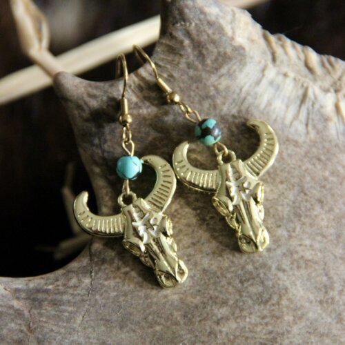 Boucles d’oreilles en pierres semi-précieuses : Turquoise naturelle Monture en Acier Inoxydable Pendentifs tatou turquoise en fer Assemblée a la main