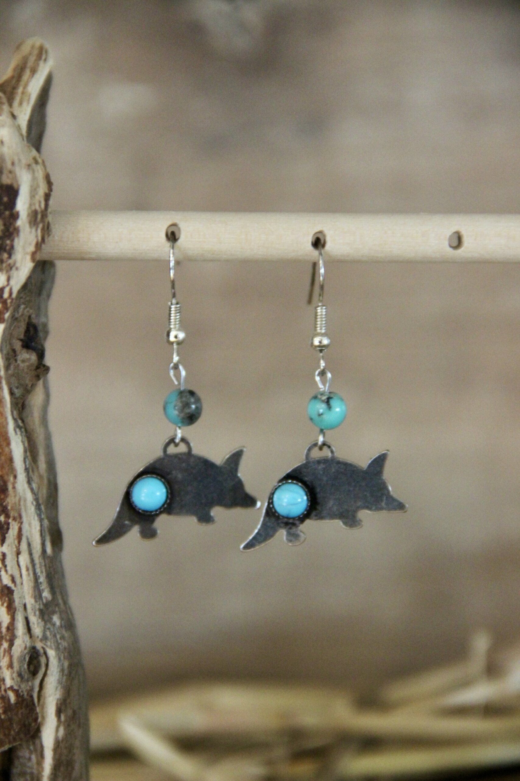 Boucles d’oreilles en pierres semi-précieuses : Turquoise naturelle Monture en Acier Inoxydable Pendentifs tatou turquoise en fer Assemblée a la main